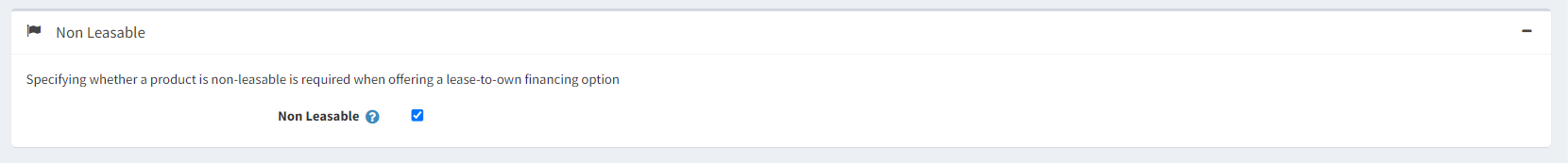 Specifying whether a product is leasable is required when offering a lease-to-own financing option (e.g. Katapult or Progressive Leasing). The ChargeAfter app treats all products as leasable by default.